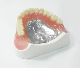 床部分が金属にで作られた自費診療の入れ歯です。床部分を薄く作れるので、保険適用のものよりも発音がしやすく、食べ物の温度も伝わりやい、違和感の少ない入れ歯です。一方で使用する金属によっては、アレルギーを引き起こす可能性があります。